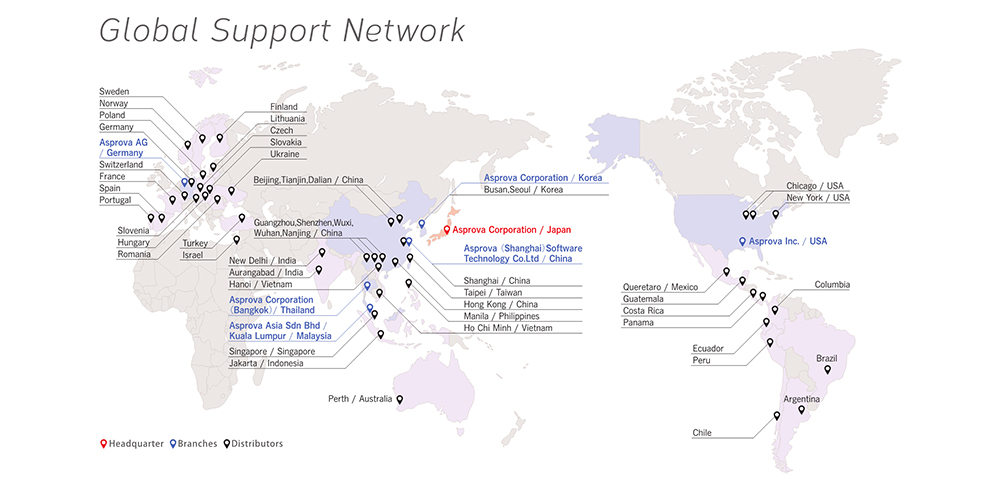 Asprova Corporation的銷(xiāo)售合作伙伴遍布中國(guó)、德國(guó)、美國(guó)、韓國(guó)、馬來(lái)西亞、印尼等國(guó)家和地區(qū)。 為加強(qiáng)面向制造業(yè)的全球化支服務(wù)體系,2005年在中國(guó),2006年在德國(guó)、韓國(guó)分別設(shè)立了現(xiàn)地法人。