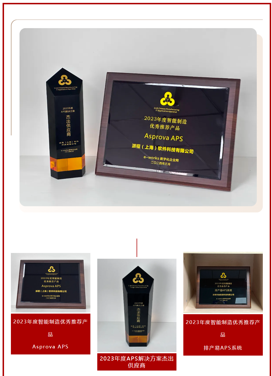 Asprova中國(guó)-派程(上海)軟件科技有限公司榮獲“2023年度 APS解決方案杰出供應(yīng)商”此項(xiàng)殊榮。