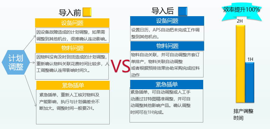通過(guò)APS能快速進(jìn)行插單、改單和調(diào)單等,大大降低手工調(diào)單的耗時(shí)。