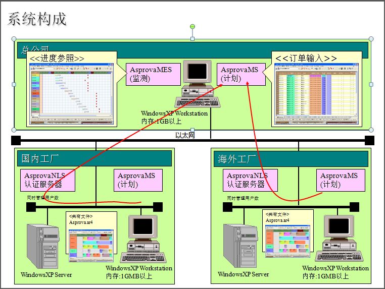 這種情況下。例如在海外工廠進(jìn)行生產(chǎn)排程發(fā)現(xiàn)實(shí)際超出負(fù)荷時,再次通過日本總部進(jìn)行分派調(diào)整。以下顯示的是系統(tǒng)組成例子。