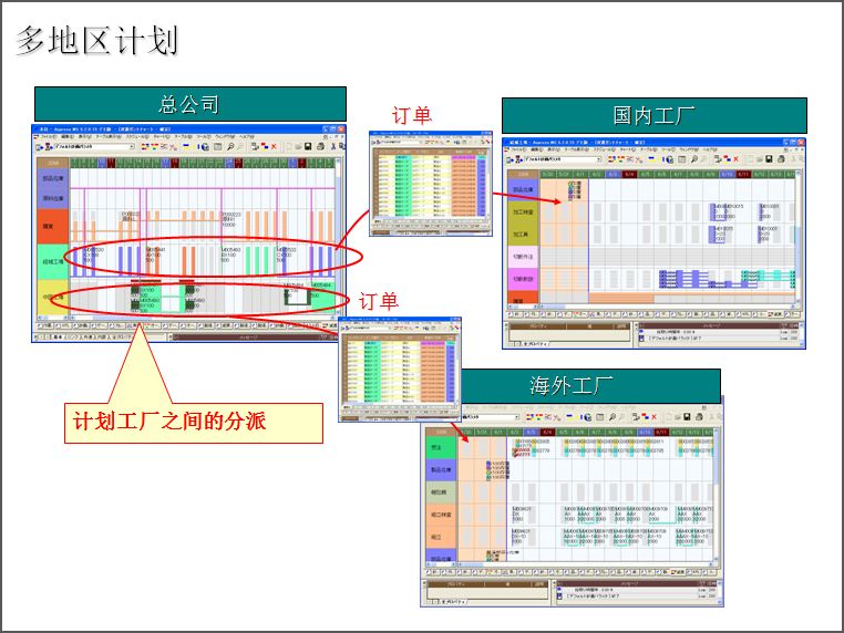 A: 例如我們通過日本總部,想根據(jù)日本及中國工廠的負荷狀況進行生產(chǎn)分派。而日本及中國各工廠根據(jù)來自日本總部的訂單進行生產(chǎn)排程(下圖)。